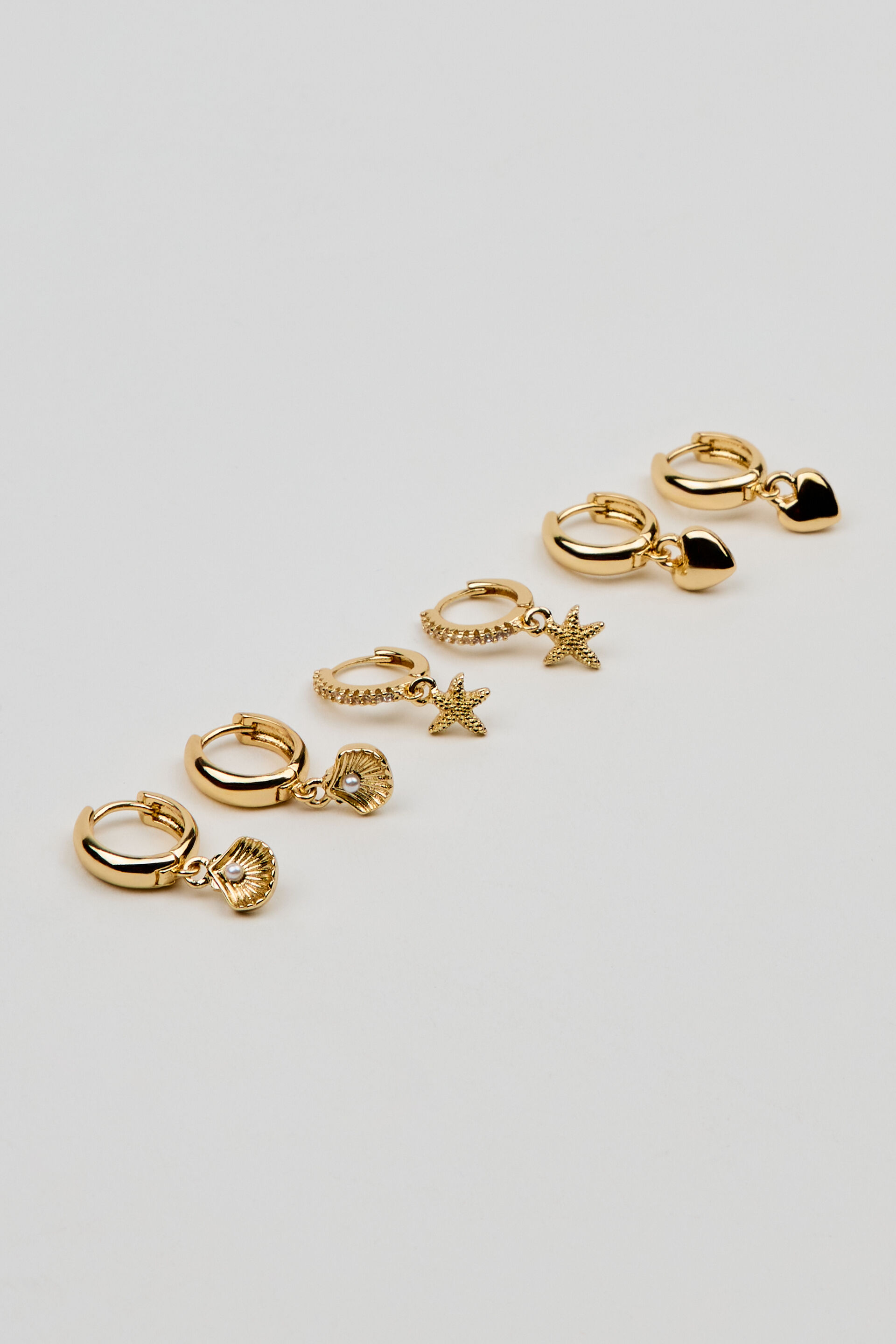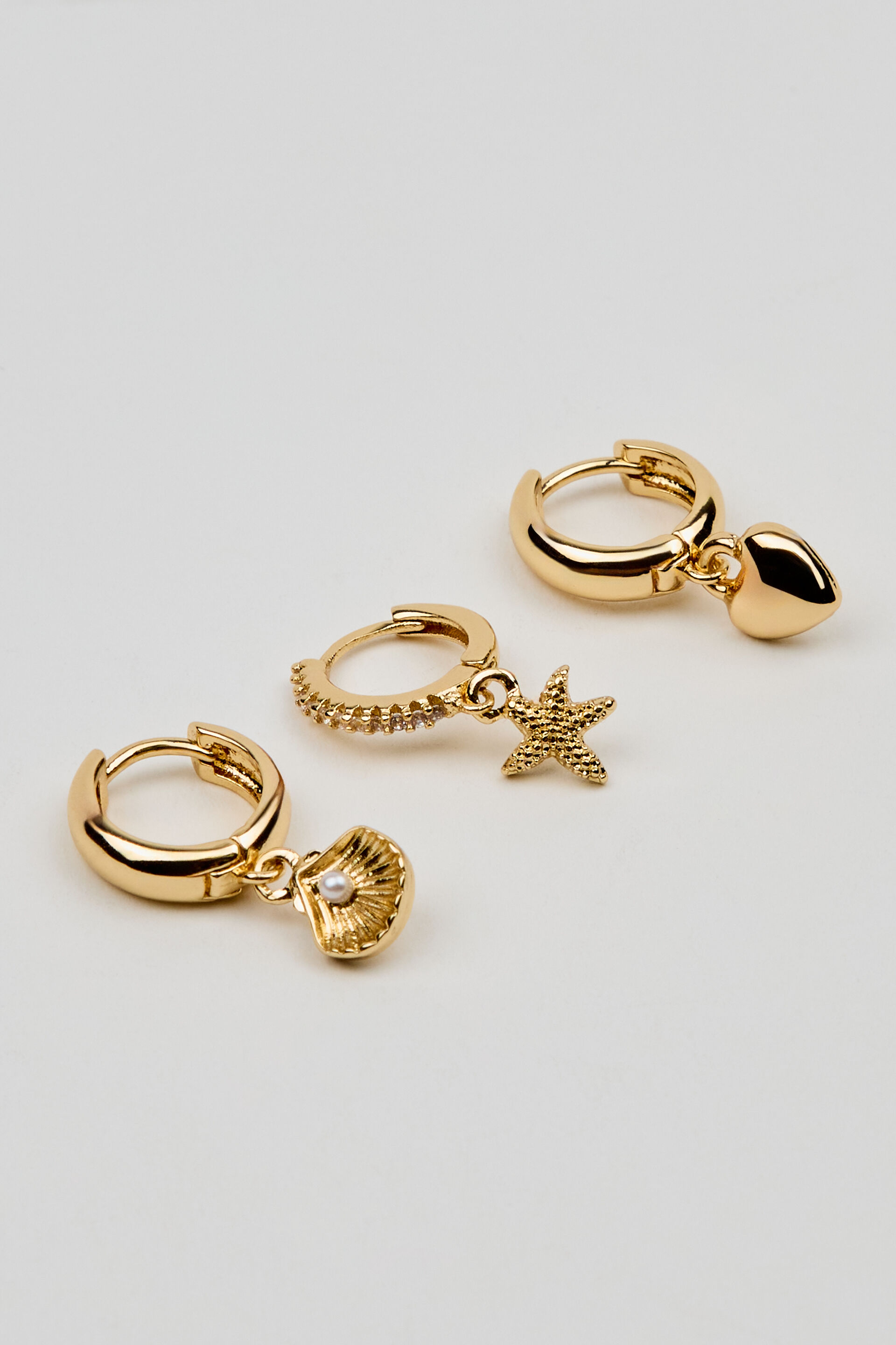 3 Pack It’s A Catch Hoop Earrings White women – It’s a catch, it’s a vibe! Features Contains 3 sets of hoop earrings Hinged closure Seashell, Star, and Heart charms at drop Metal costume jewelry All jewelry is nickel, lead, and cadmium free Imported