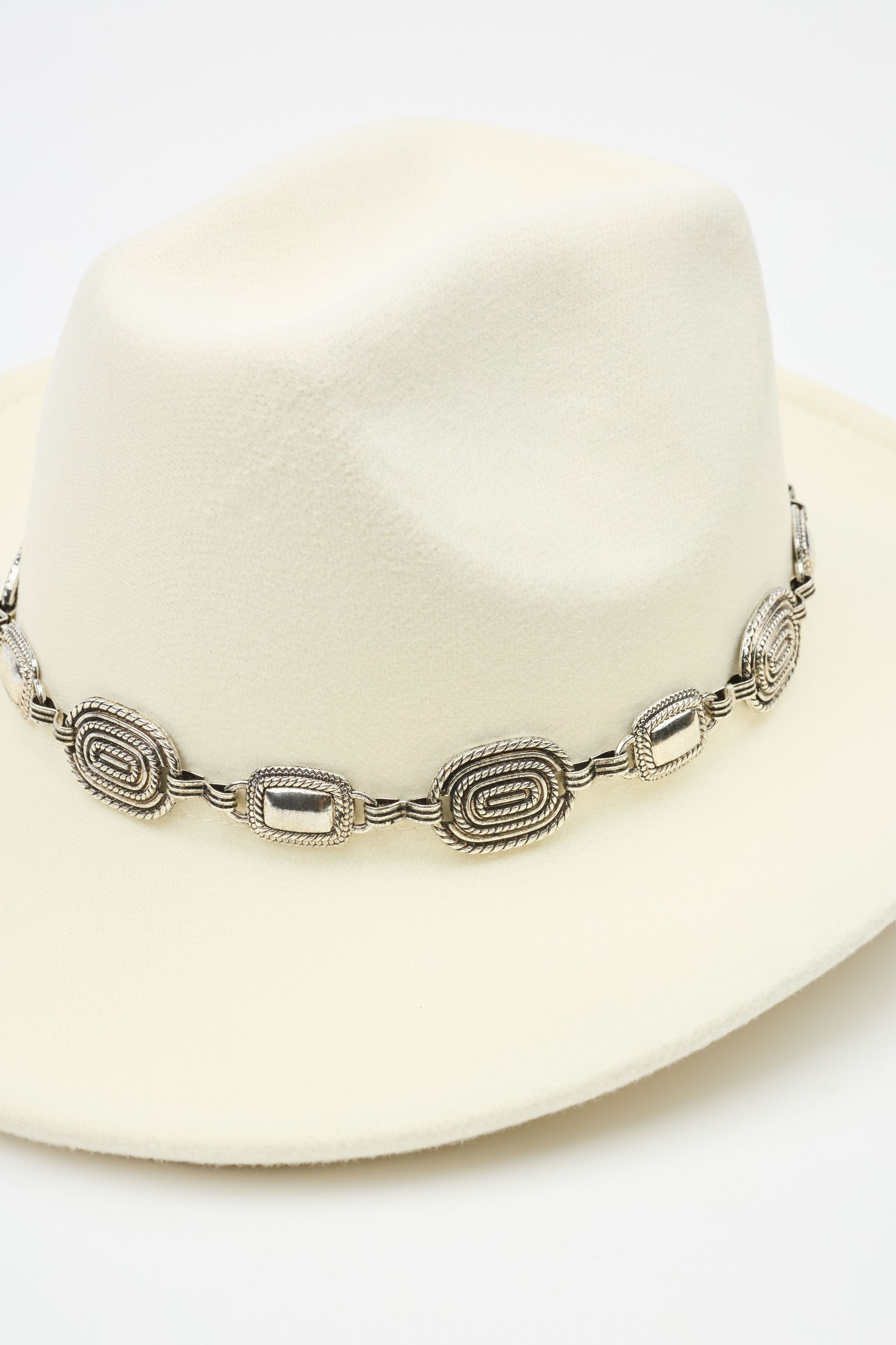 Felt Cowboy Hat WHITE women – Your well deserved yee-haw moment is here! Features Antiquated hardware hatband Sweatband at interior Imported