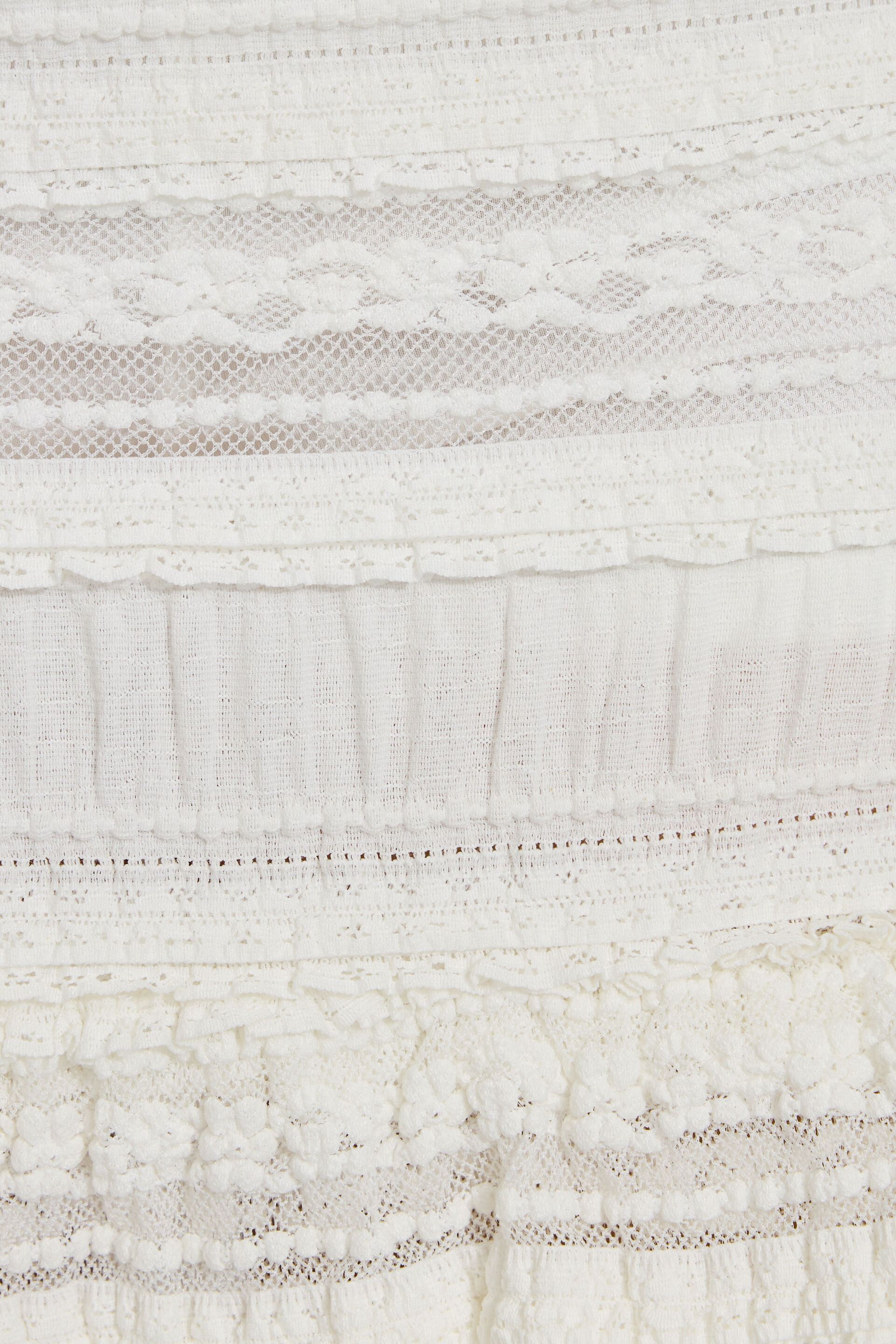 Ruffle Lace Skirt White women – Let’s go girls! This demands a cute top . Features Elasticized waistband Lace detailing throughout Shorts-style lining Size & Fit Length: Mini Model is wearing size S Materials & Care Content: 50% cotton, 45% nylon, 5% spandex Care: Machine wash, cold Imported