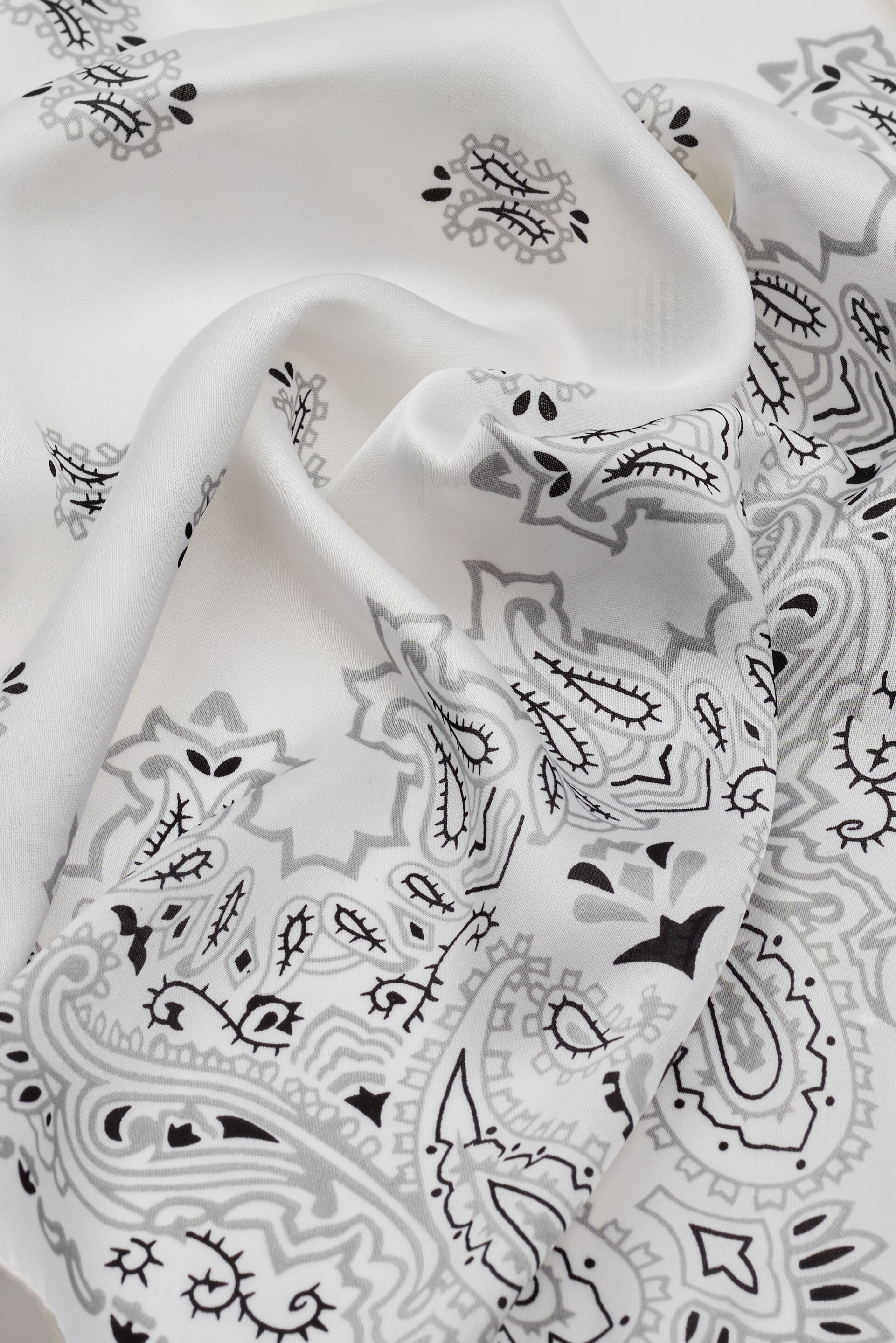 Serafina Scarf White women – The perfect accessory for girls who look good in denim shorts . Features Bandana-style scarf Graphic pattern throughout W25 x L25 in 100% polyester Imported