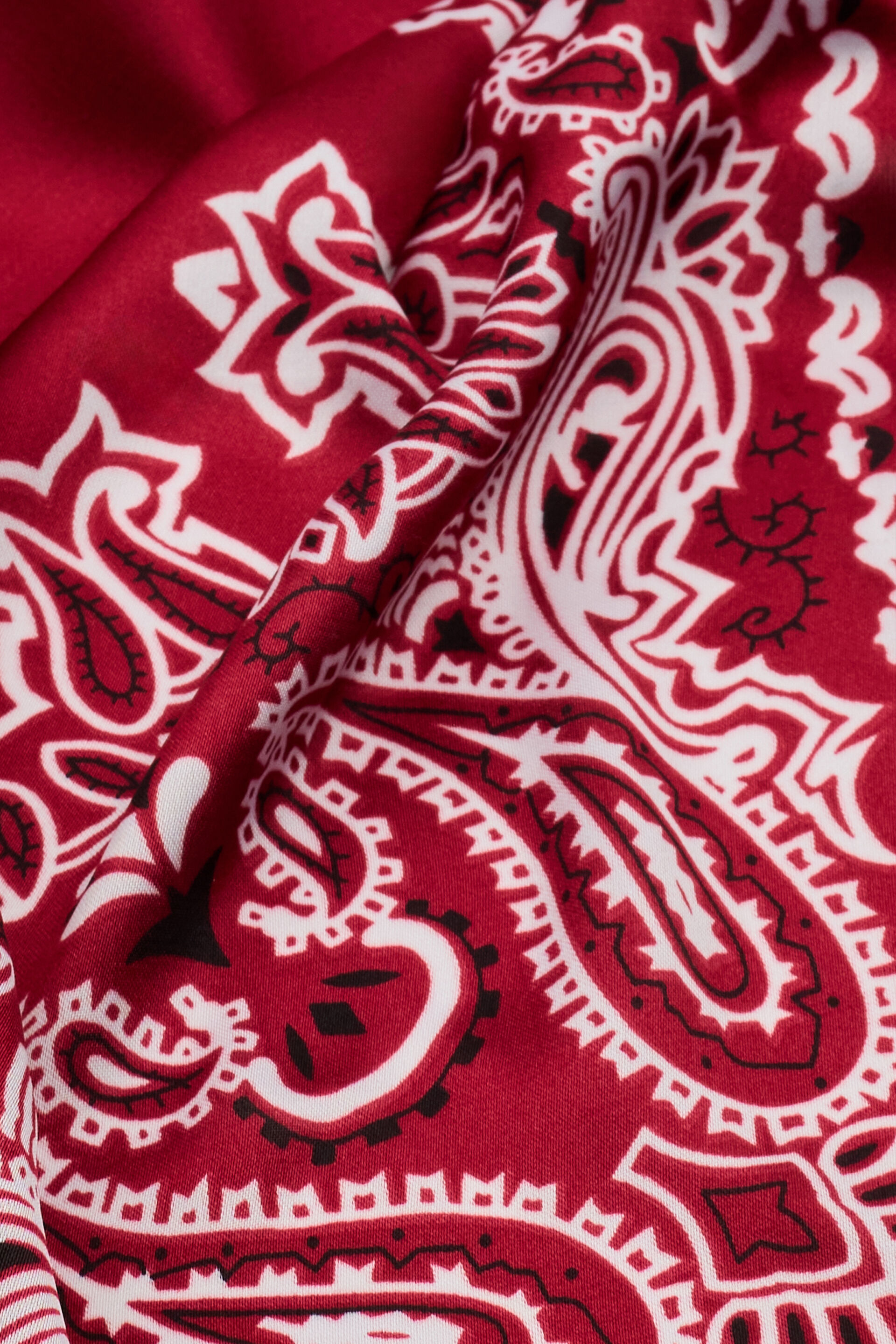 Serafina Scarf Red women – The perfect accessory for girls who look good in denim shorts . Features Bandana-style scarf Graphic pattern throughout W25 x L25 in 100% polyester Imported