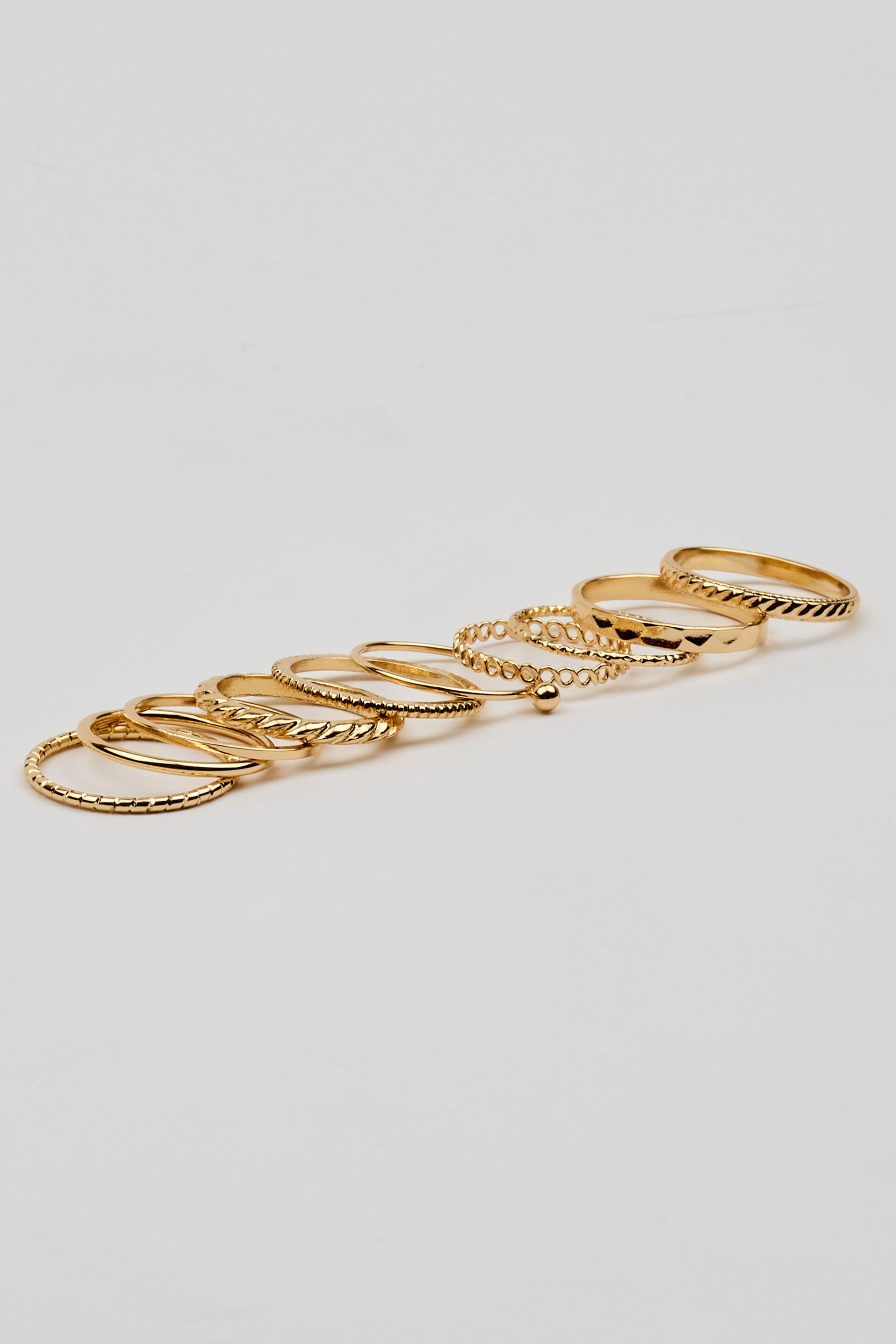 Set of 10 Simple Rings Yellow women – Do these ring a bell? Features Set of 10 rings Stackable Metal costume jewelry All jewelry is lead, nickel, and cadmium free Imported