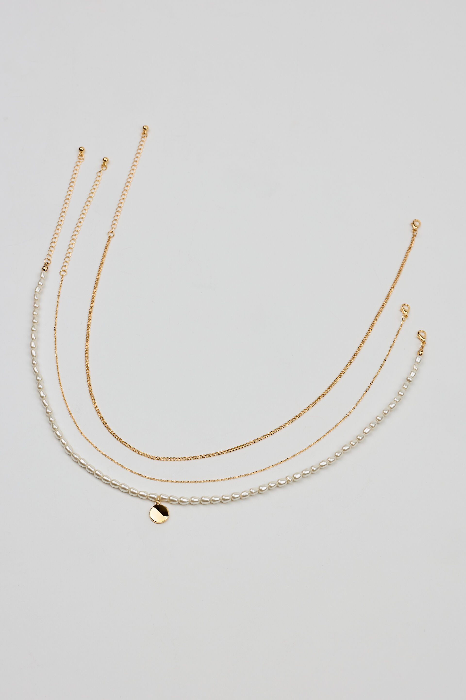Set of 3 Pearl and Chain Necklaces White women – The girlies are accessorizing . Features Chain link and pearl necklaces Adjustable lobster clasp fastening Metal costume jewelry All jewelry is lead, nickel, and cadmium free Imported