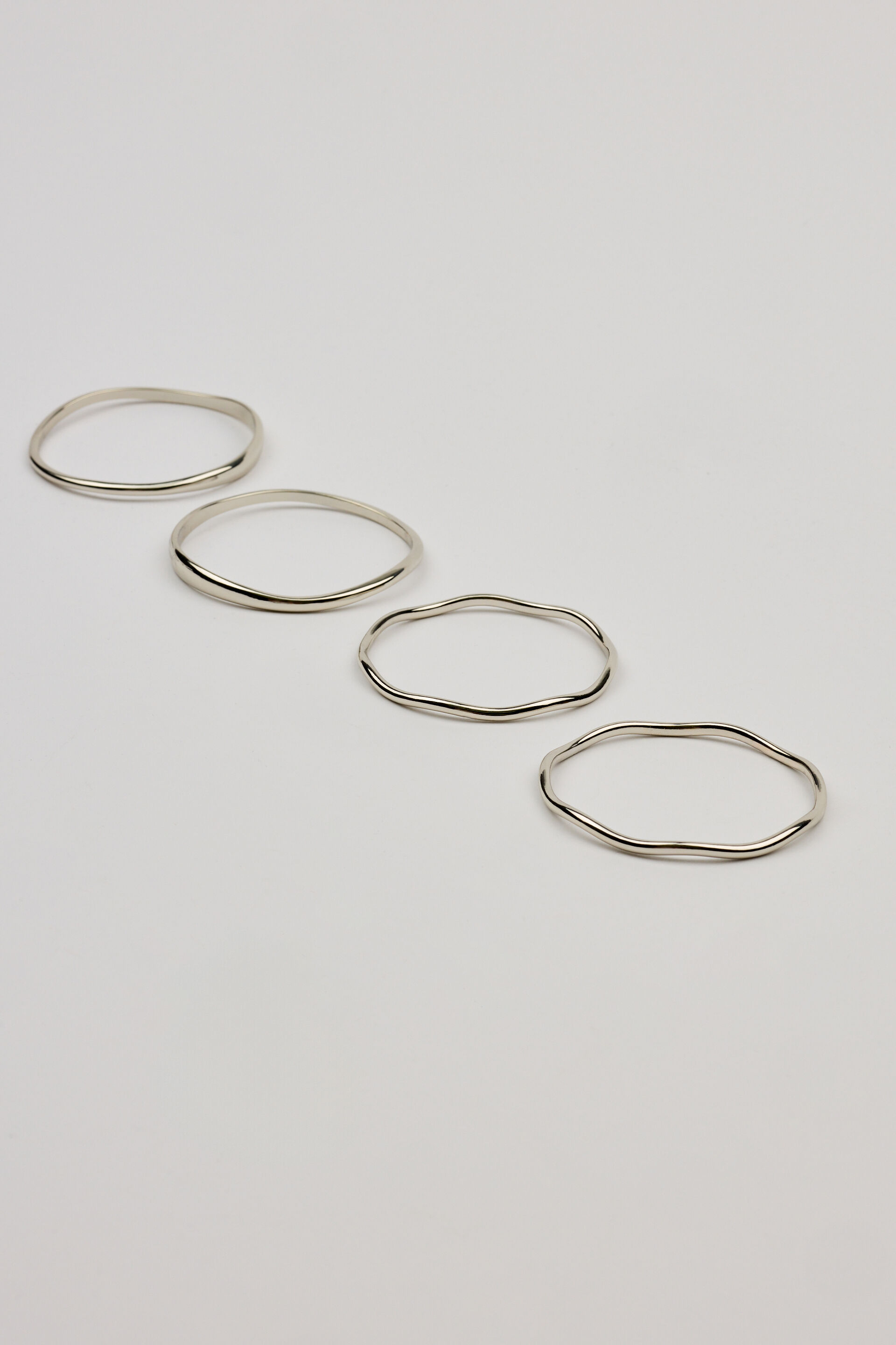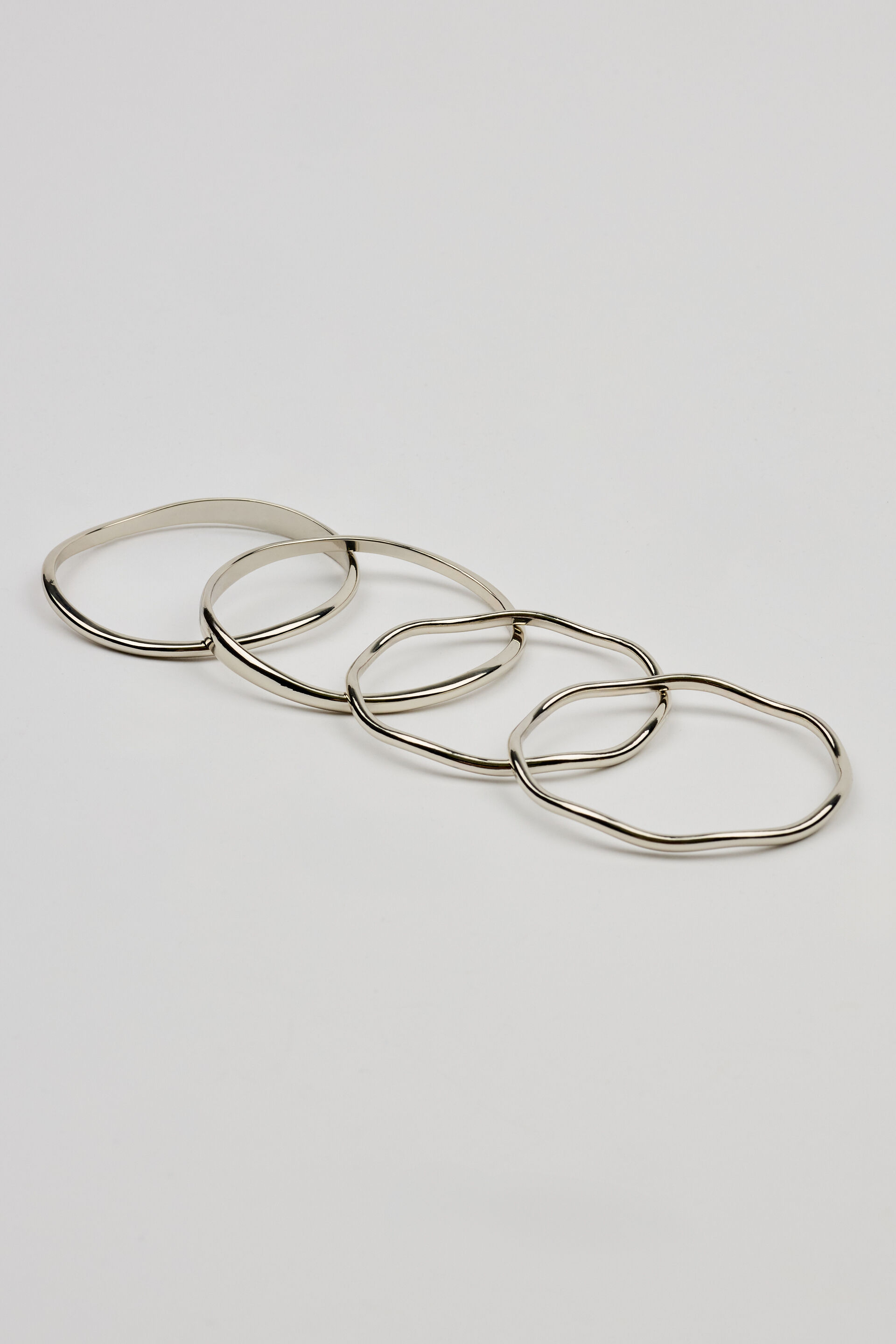 Set of 4 Wavy Bangles GREY women – It’s called being alluring and mysterious, sweetie. Features Set of 4 stackable wavy bangles Metal costume jewelry All jewelry is lead, nickel, and cadmium free Imported