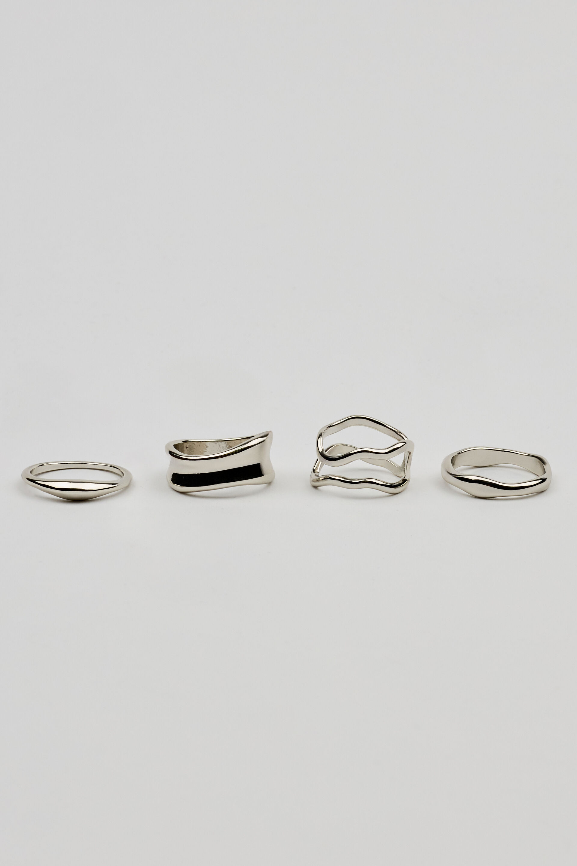 Set of 4 Wavy Minimal Rings Gray women – Accessorize, but make it avant-garde. Features Set of 4 rings Stackable Metal costume jewelry All jewelry is lead, nickel, and cadmium free Imported