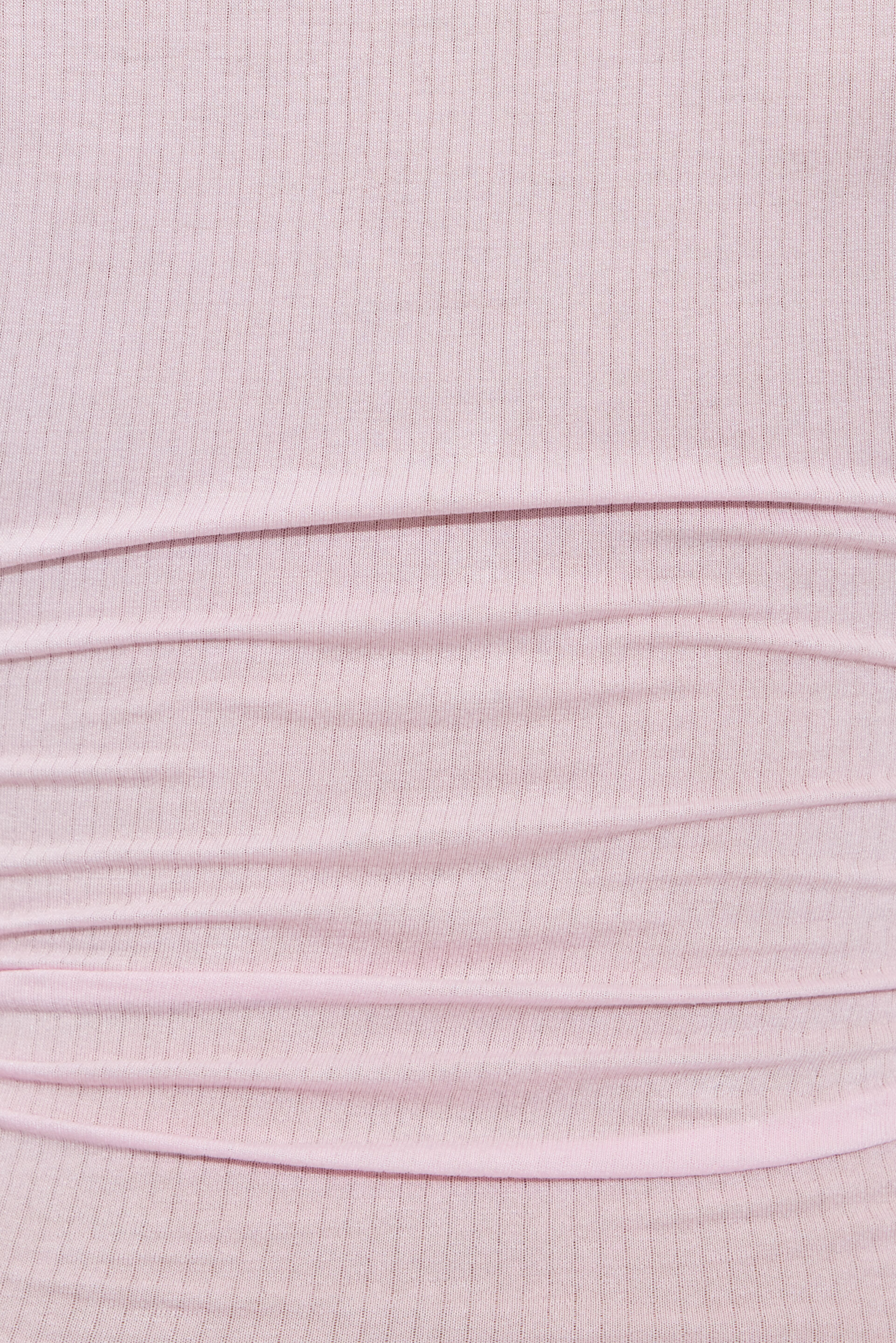 Sheer Ribbed Slouchy Pants Pink women – Comfy pants on, phone on do not disturb, hair up. Features Self-tie drawstring at elasticized waistband Mock Henley button placket Ribbed Semi-sheer Size & Fit Fit: Fitted Rise: 8.5