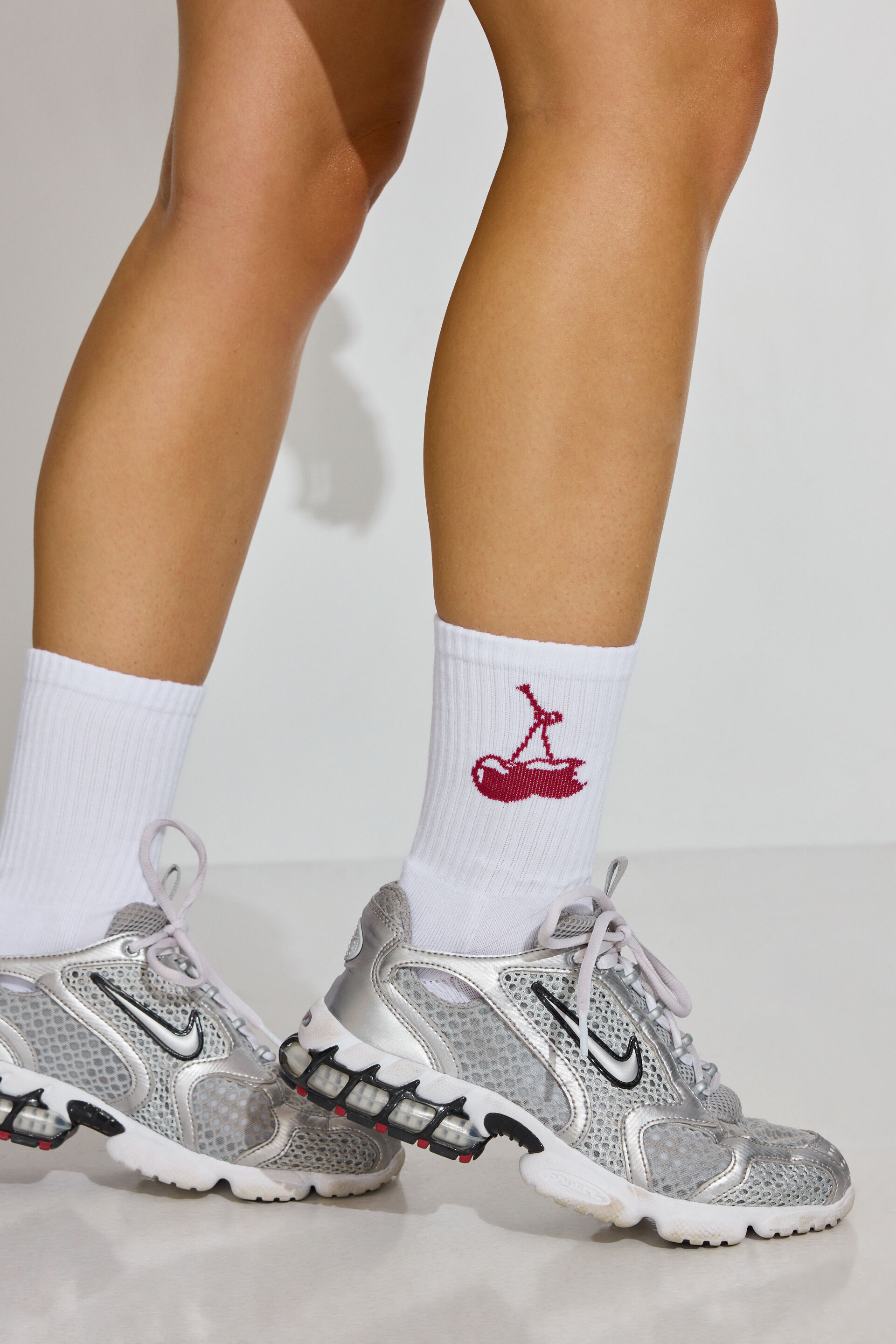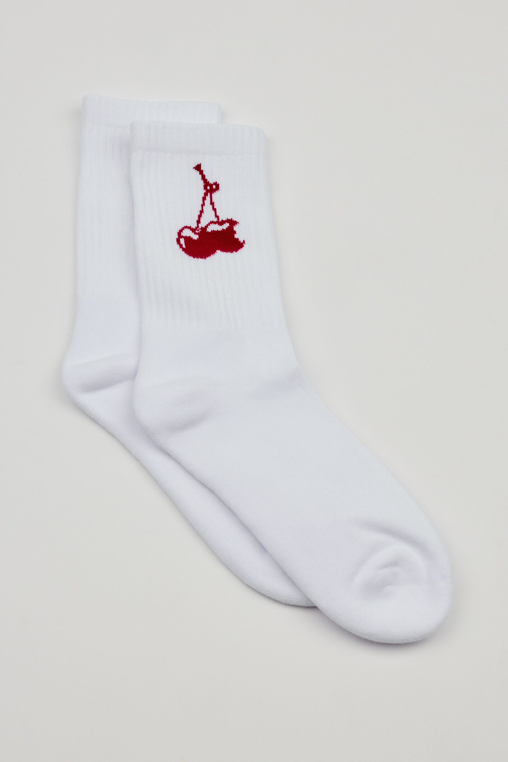 Sour Cherry Crew Socks Red women – Socks, but make them cute! Features 1 pair of cotton-blend socks Intarsia graphic at cuff 75% cotton, 22% nylon, 2% spandex, 1% rubber Imported