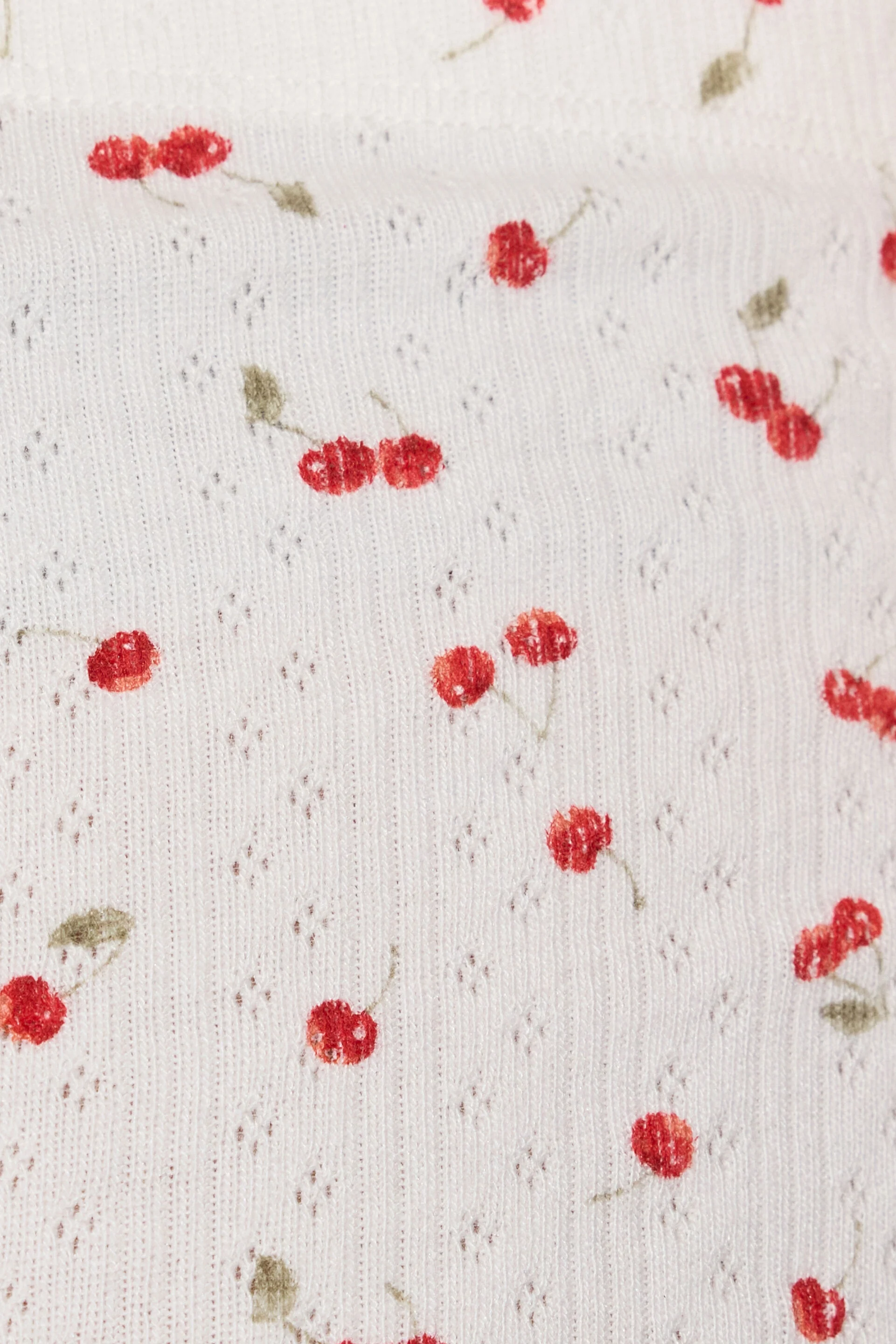Tiny Pointelle Lettuce Edge Shorts White women – Too hot to go to bed! Features Semi-sheer Pointelle detailing throughout Bow appliqu é at front waistband Mock button fly Lettuce edge hem Stretchy Size & Fit Length: Mini Rise: 8.5